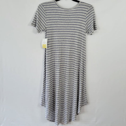 Vestido LuLaRoe Carly Gris Midi Preppy Rayas Clásico Mangas Cortas Para Mujer Talla 2XL