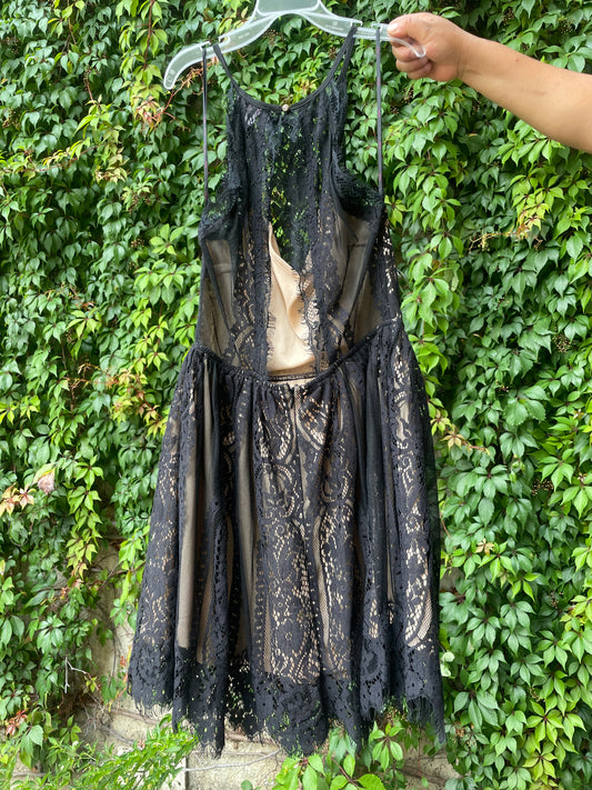 Vestido Corto de Encaje Negro con Fondo Nude - A’gaci - talla S