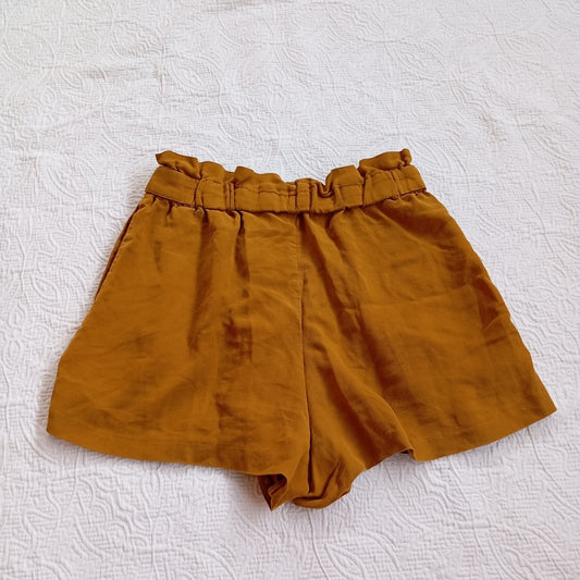 Zara Trf Mujer Shorts, Color Mostaza Con Cintura Alta, Talla XS