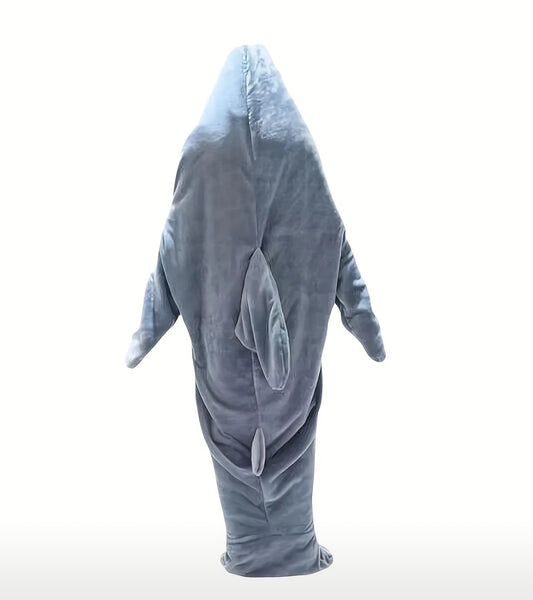 1pc Bata con Capucha de Franela Acogedora con Diseño de Tiburón - Ropa de Dormir Cálida y Suave para Hombres y Mujeres, Azul Claro con Detalles Blancos, Talla L - Lavable a Máquina, Ropa de Estar en Casa de Invierno