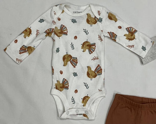 Adorable Carter's Baby Primer Conjunto de Acción de Gracias Body Camisa y Pantalones 3 piezas - Talla 3M