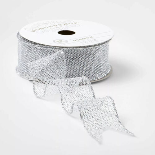Cinta de tela de malla de 1,5" blanca/plata de 15 pies - Wondershop