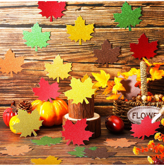 200 piezas de hojas de otoño recortadas de hojas de papel con purpurina, cartón, confeti de otoño, decoración de aula con puntos de pegamento, hojas de arce, recortes coloridos para tablón de anuncios, decoración escolar