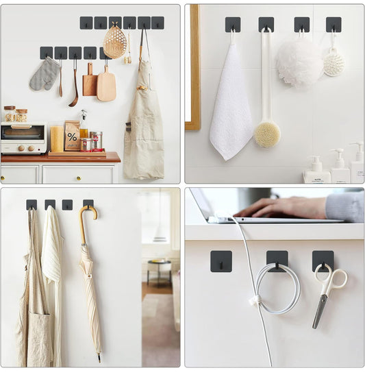 Ganchos adhesivos VIS'V, ganchos de pared autoadhesivos negros, palo de ducha impermeable de acero inoxidable de alta resistencia, ganchos, ganchos de toalla pegajosos para baño, cocina, sala de estar, autocaravana - 4 piezas