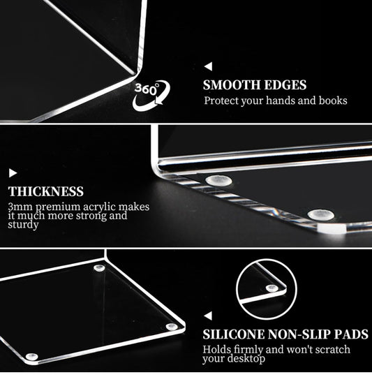 Sujetalibros acrílicos, soportes transparentes para libros, organizador de libros con 24 alfombrillas antideslizantes de silicona para biblioteca, oficina, escuela (5 x 5 x 7.3 pulgadas de grosor) set de 2 - 4 pcs total