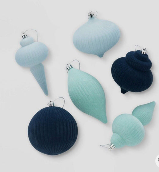Adornos de terciopelo azul/árbol de Navidad flocado irrompibles 6 piezas por Wondershop-