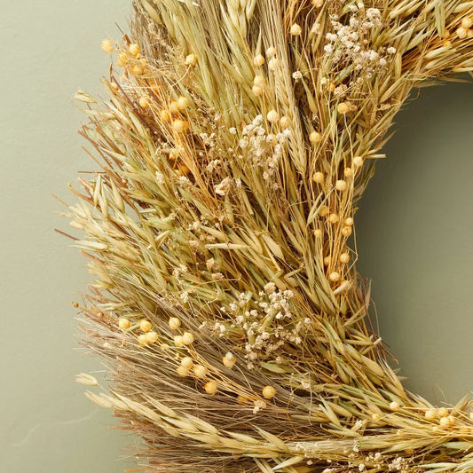Corona - Guirnalda de hierba conservada y lino de 21" - Hearth & Hand™ con Magnolia: Decoración de primavera para interiores