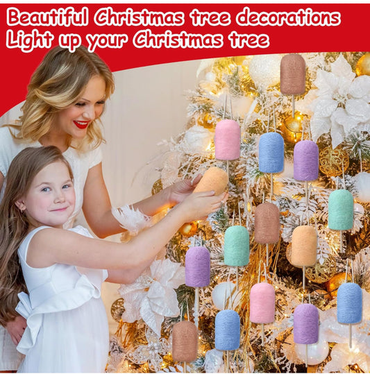 24 piezas de adornos de caramelo para árbol de Navidad, decoración de piruletas de fieltro de Navidad, macarrones, artesanías, adornos colgantes de lana para árbol de Navidad, decoración del hogar, fiesta de vacaciones