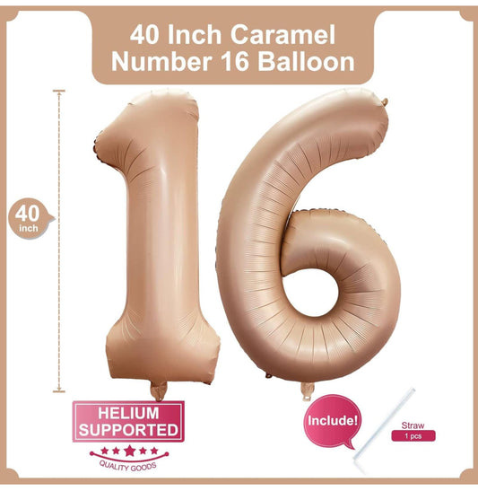 Globo de 40 pulgadas color caramelo número 16 61 tamaño grande Jumbo dígitos de aluminio Mylar globos de helio retro albaricoque beige globos para fiesta de cumpleaños 16 61, decoraciones de celebración de graduación, suministros de aniversario