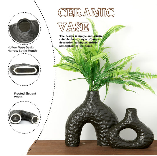 Decoración minimalista de jarrón de cerámica negra– Juego de 2 jarrones redondos de cerámica para flores y hierba de pampas, jarrón estético para decoración de mesa, sala de estar y dormitorio, centro de mesa decorativo