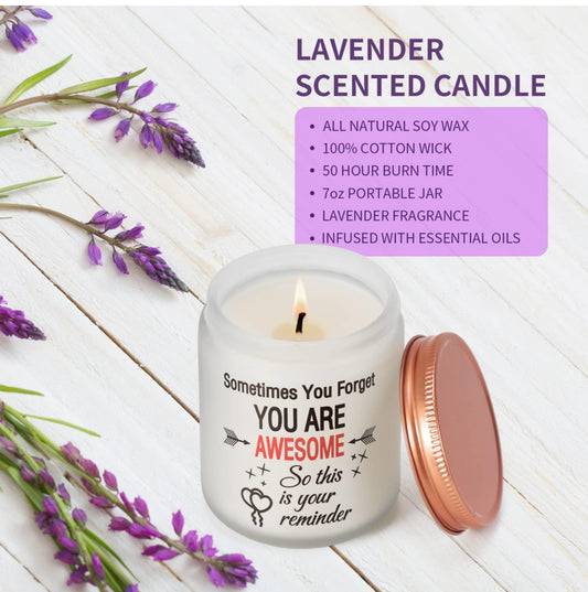 Thank You Gifts - Vela perfumada con aroma a lavanda, divertidos regalos inspiradores para mujeres, mamá, hija, hermana, tía, amigas, 100% soja, 7 onzas