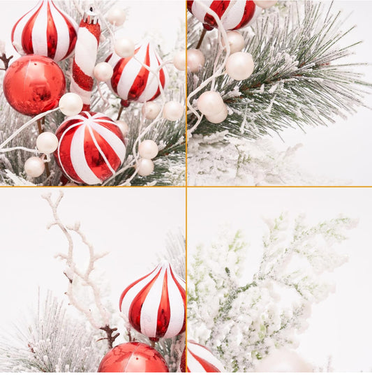 Decoración de mesa de Navidad de 12 pulgadas en maceta de cerámica con aguja de pino flocado de bayas blancas y rojas, adornos decorativos para árbol de vacaciones, mesa, centro de mesa