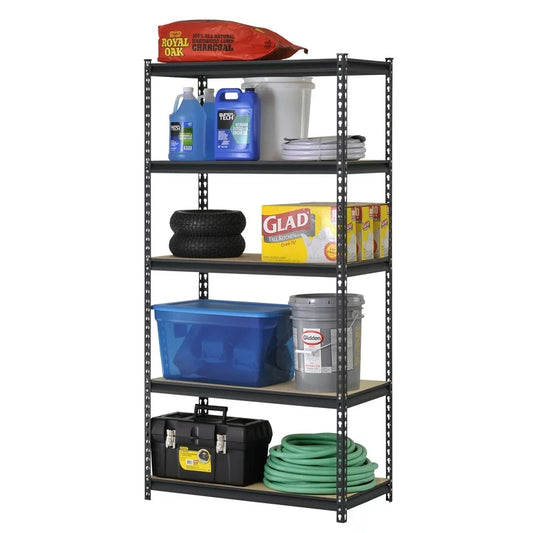 Muscle Rack 30" W x 12" D x 60" H Estantes independientes de acero de 5 estantes, 500 libras. Capacidad por estante; Plata