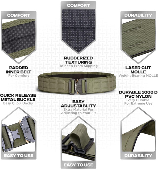 Cinturón de batalla | Compañía propiedad de veteranos de combate | Cinturón táctico acolchado | Cinturón de trabajo con hebilla de liberación rápida de metal, Varios colores