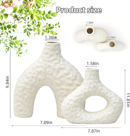 Decoración minimalista de jarrón de cerámica blanca – Juego de 2 jarrones redondos de cerámica para flores y hierba de pampas, jarrón estético para decoración de mesa, sala de estar y dormitorio, centro de mesa decorativo