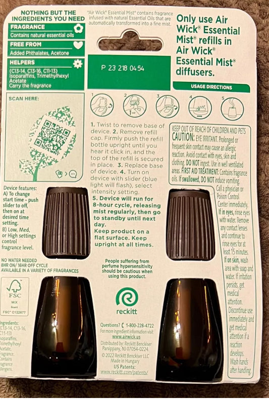2 unidades Air Wick Essential Mist Fragancia Bruma Repuesto - Pino Fresco y Enebro