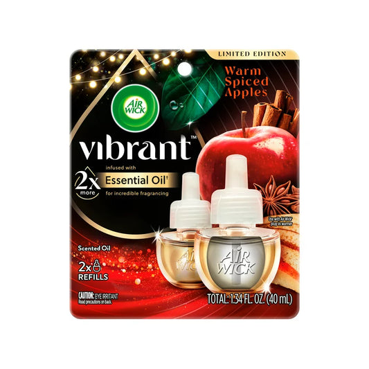 Tapón vibrante de mecha de aire en recarga de aceite perfumado, 2ct, manzanas con especias calientes