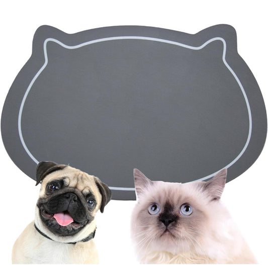 Tapete de alimentación para mascotas para perros y gatos, absorbente, antideslizante, de diatomita, tapete para cuenco de agua para perros, súper absorbente, de secado rápido, para evitar derrames de agua (gris oscuro + 18.1 x 11.8 pulgadas + forma anorma