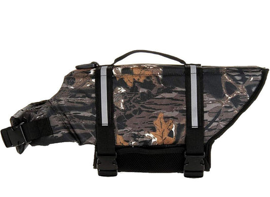 GabeFish Chaleco salvavidas para perros Chaleco Ropa de seguridad Collar Arnés Salvador de mascotas Conservación de natación Tira reflectante Traje de baño BlackCamo XS