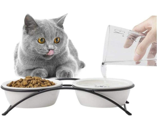 Cuencos dobles para perros y gatos, cuencos dobles para perros y gatos, cuencos de cerámica para alimentación de gatos, cuenco de agua para perros con soporte, comedero para gatos y mascotas.