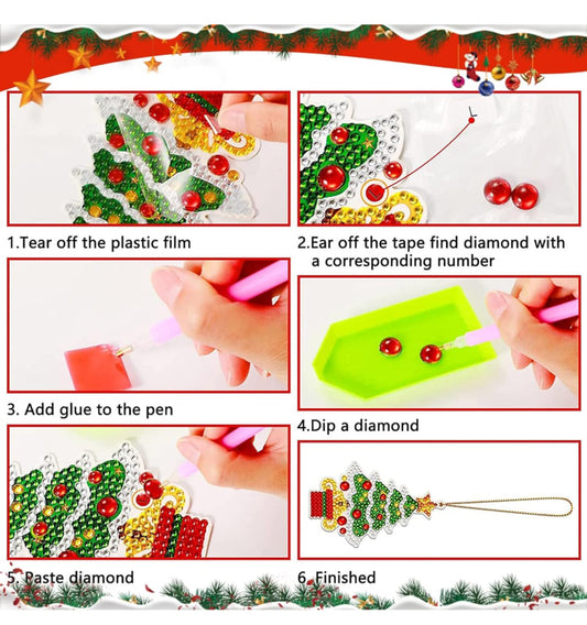 32 piezas de llavero de pintura de diamantes de Navidad, mini llavero de diamante 5D, kit de llavero de diamantes de imitación para bricolaje adornos de arte de Navidad