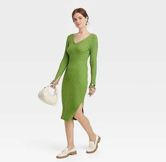 Vestido suéter manga larga para mujer - Un nuevo día verde - talla S