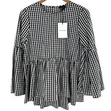 Top Who What Wear Negro/Blanco Guinga Algodón Manga Campana Peplum Talla M