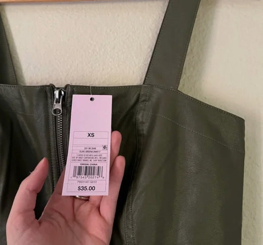 Mini vestido para mujer de cuero sintético con cremallera frontal - verde fábula salvaje talla xs