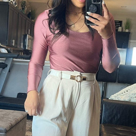 Blusa acabado satinado de manga larga y corte entallado para mujer - A New Day™ Rosa - talla XS