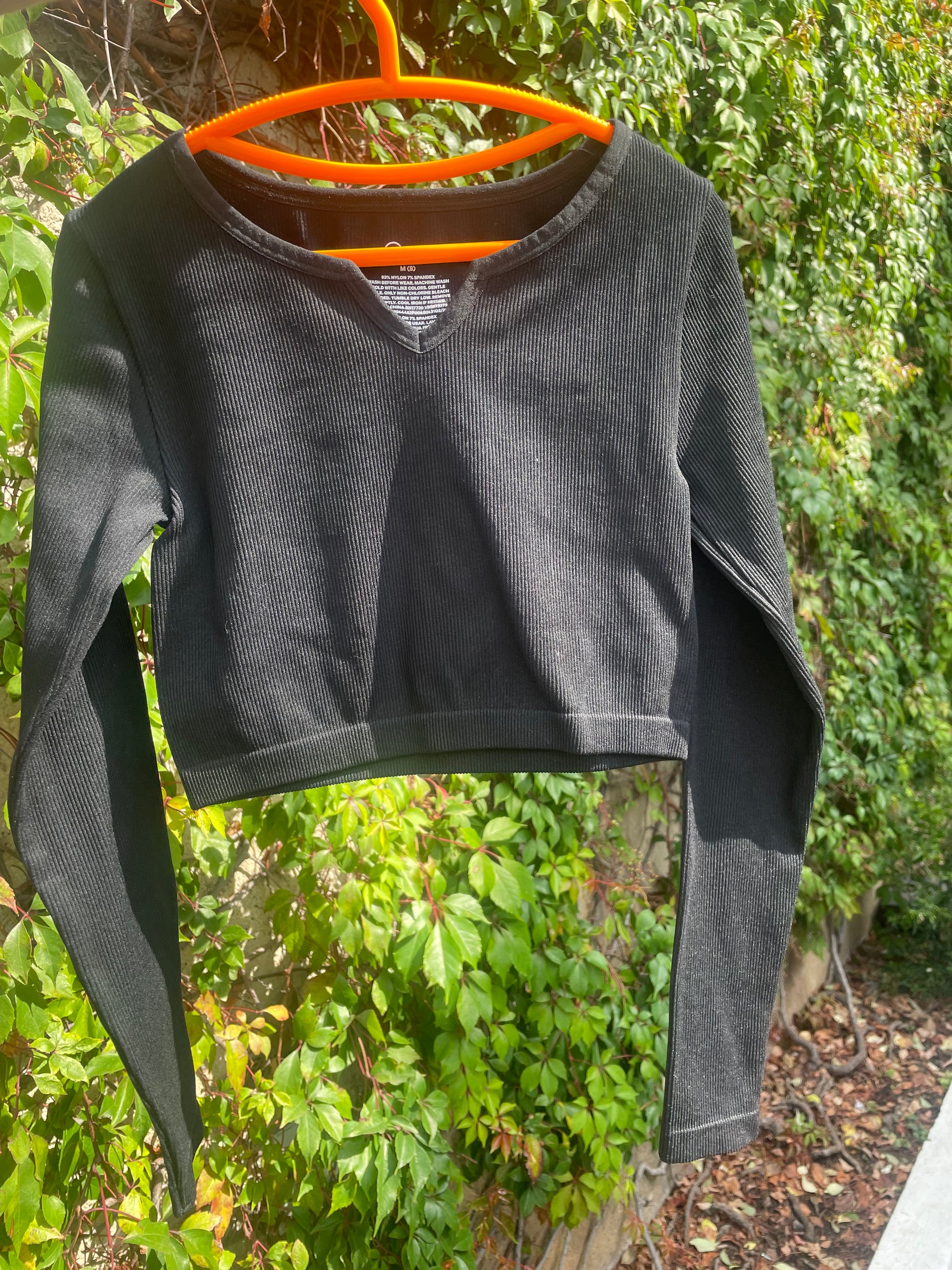 Blusa crop top manga larga acanalada - art class - talla m (8)