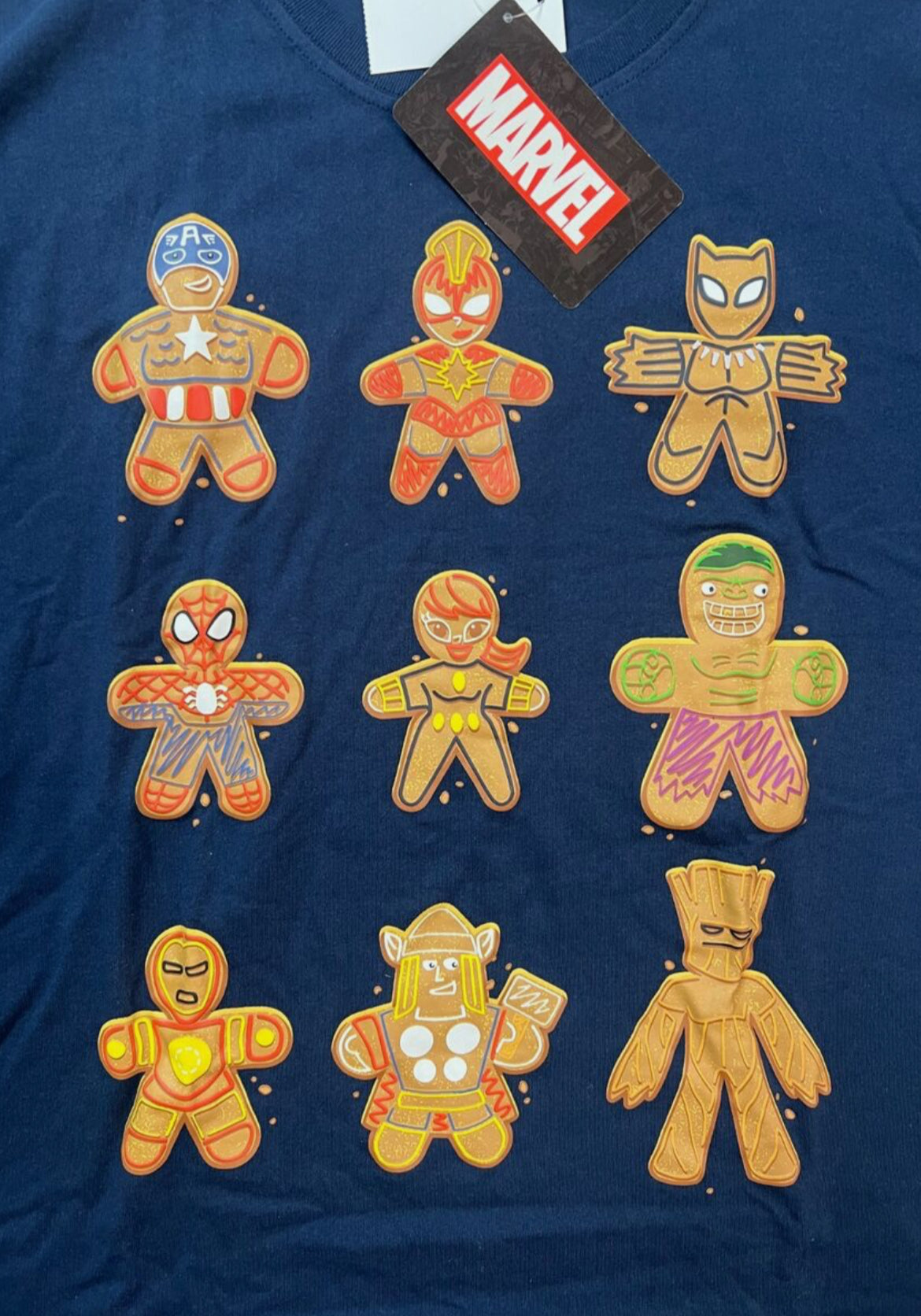 Camiseta Para Hombre Marvel Pan de Jengibre Manga Corta Vacaciones Gráfico Azul Marino Talla M