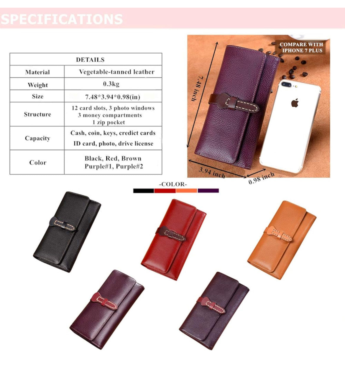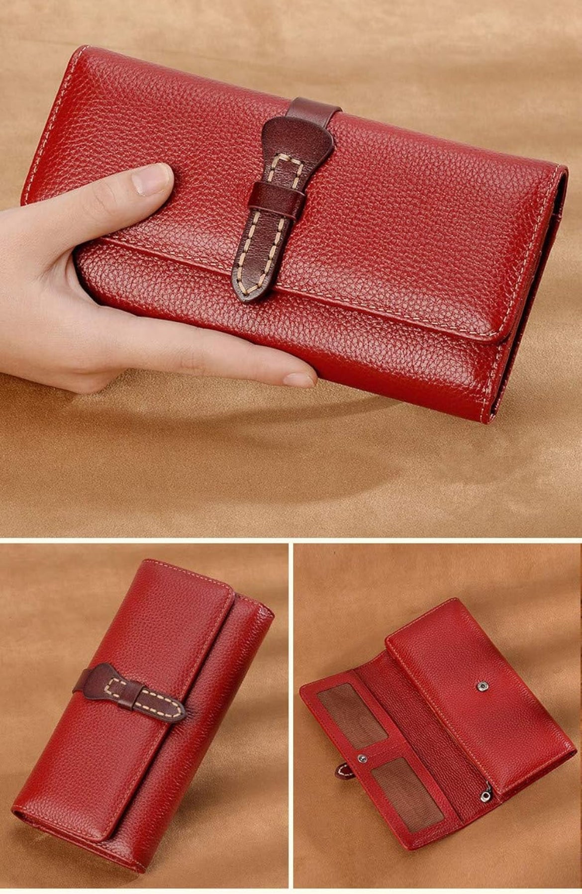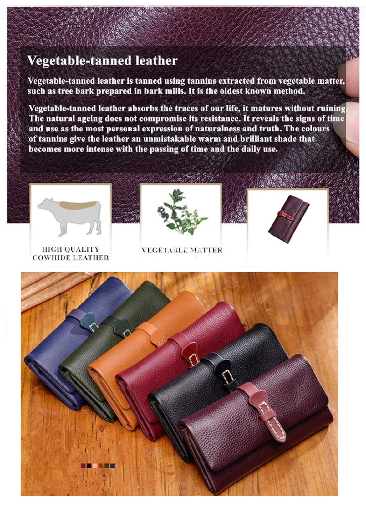 Cartera para mujer de lujo curtido vegetal cuero embrague monedero largo señoras titular de la tarjeta de crédito organizador - disponible en corinta