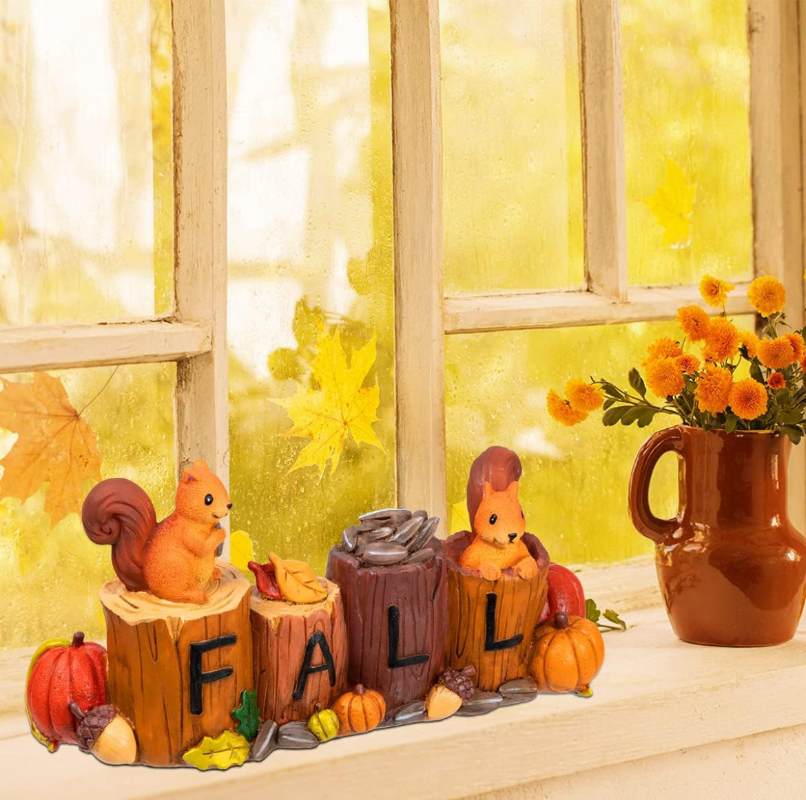 Decoración del hogar de resina de otoño, adornos rústicos de ardilla miniatura pintados a mano para el día de la cosecha de Acción de Gracias, decoración de cocina
