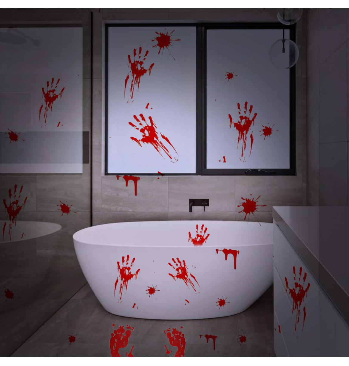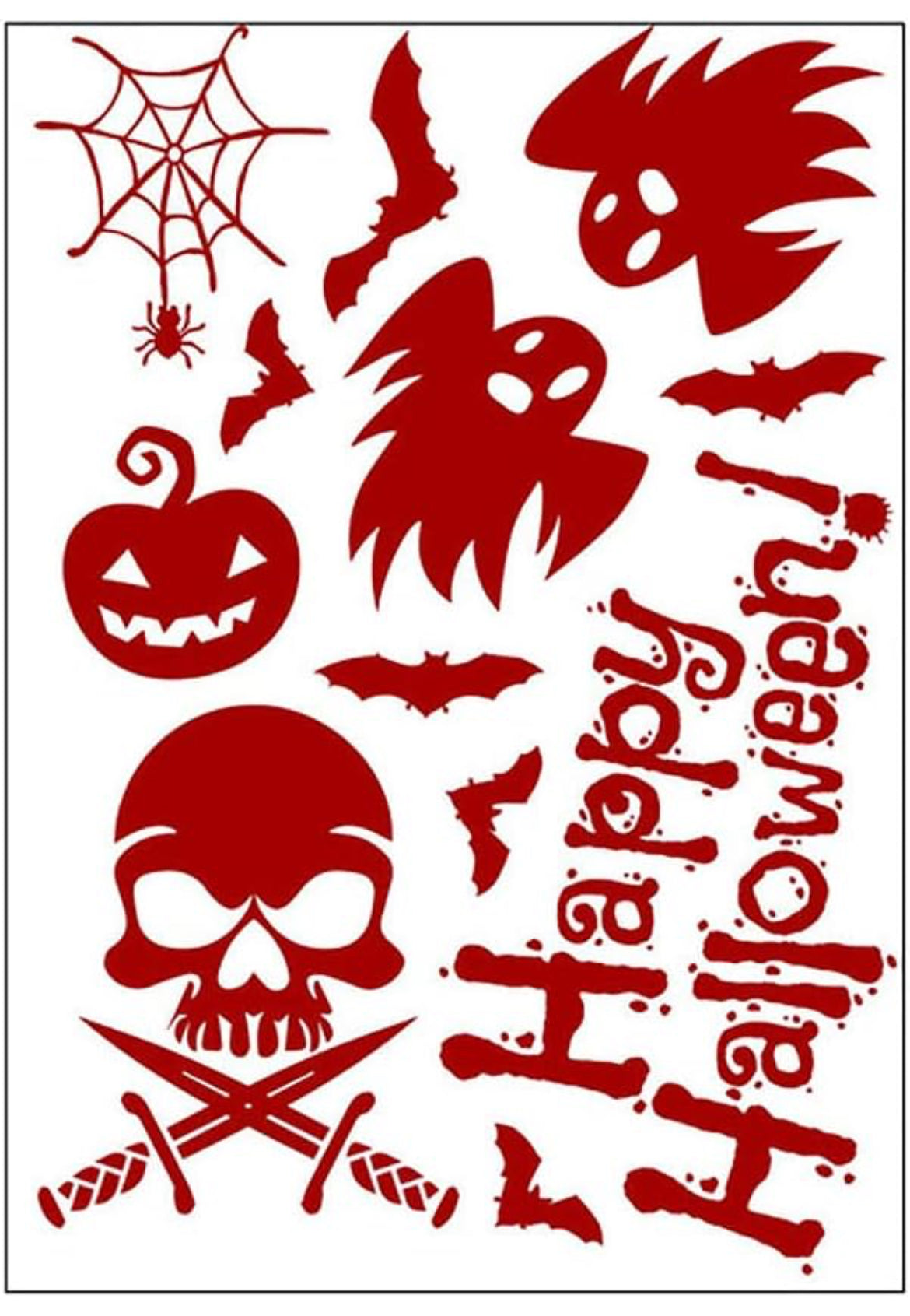 Decoraciones de Halloween, 188 calcomanías de Halloween para ventana, 9 hojas de huellas de manos sangrientas, calcomanías de pared de Halloween con calcomanías de tatuaje, decoraciones de ventana de Halloween