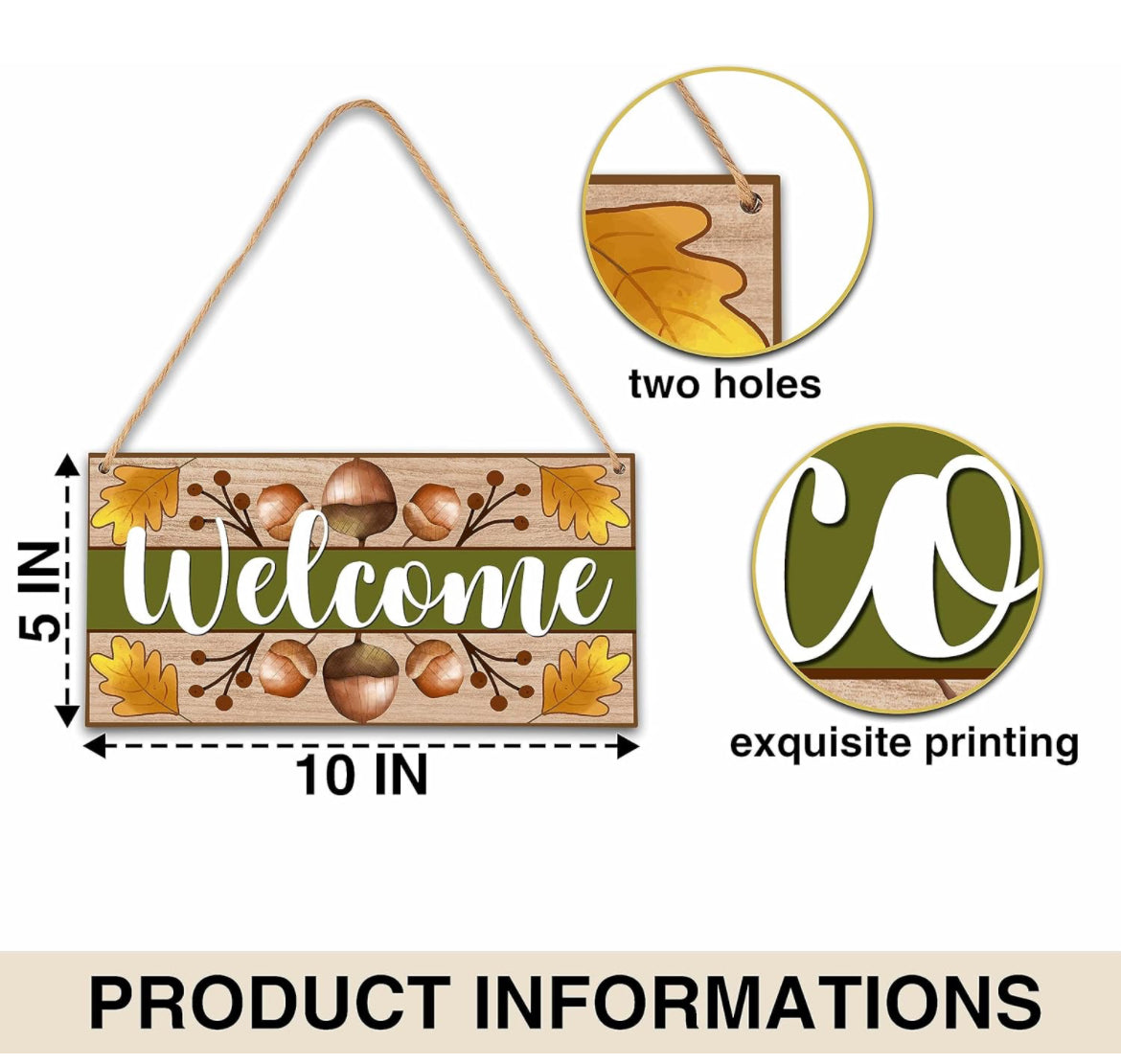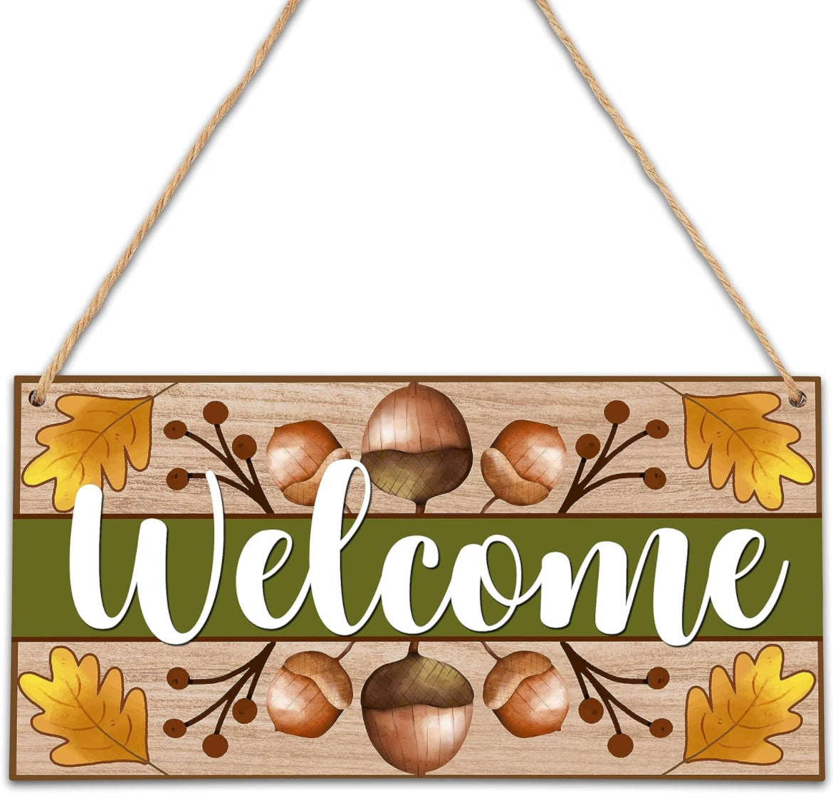 Letrero de bienvenida para puerta delantera exterior, decoración de otoño, arte de pared, letrero colgante, placa colgante de nueces de otoño, colgador de puerta para porche al aire libre hogar