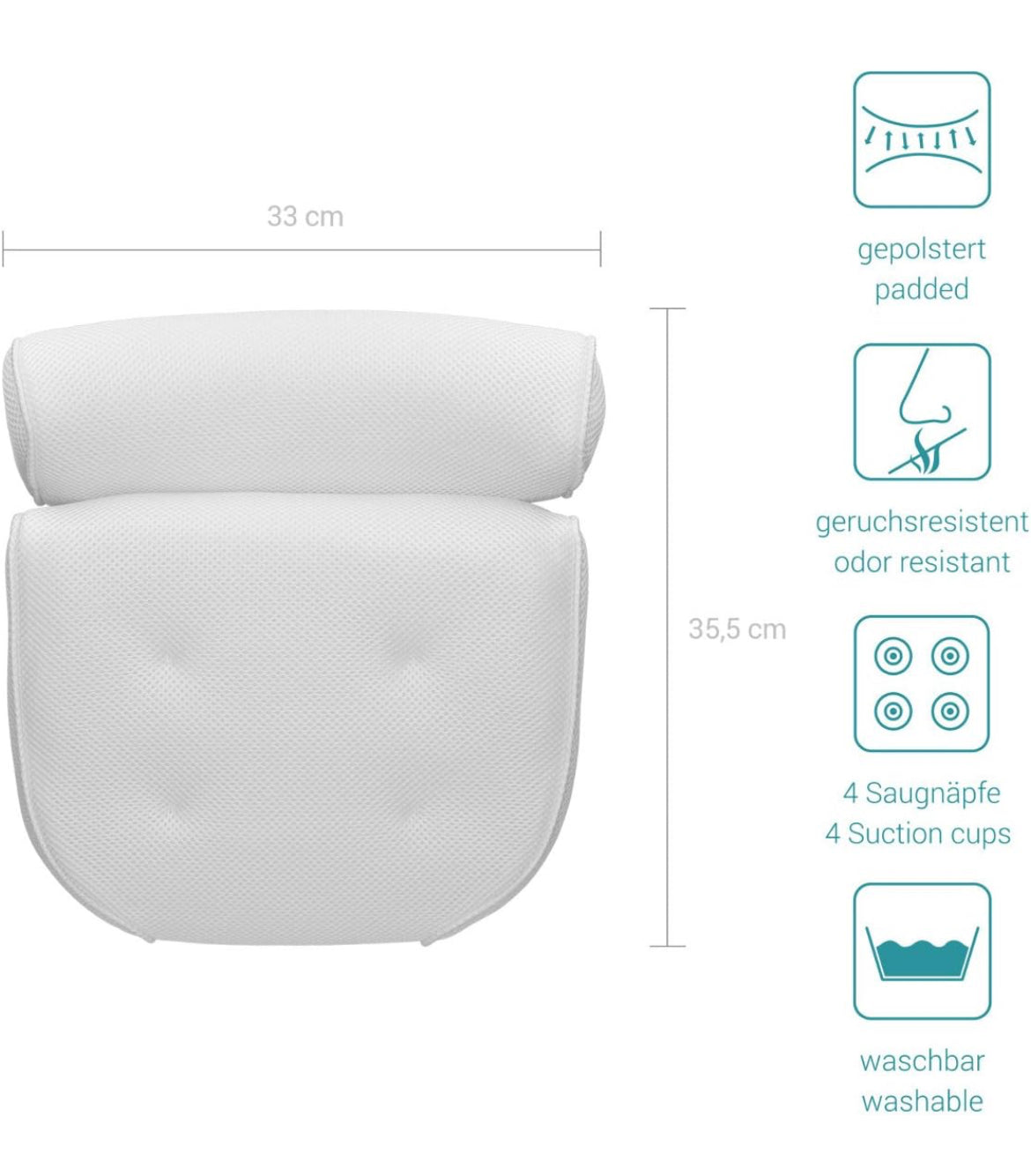 Navaris Almohada de baño grande antideslizante para cabeza cuello hombros - Jacuzzi Home Spa Relajación 4 ventosas Eco-tex Standard 100 - Blanco