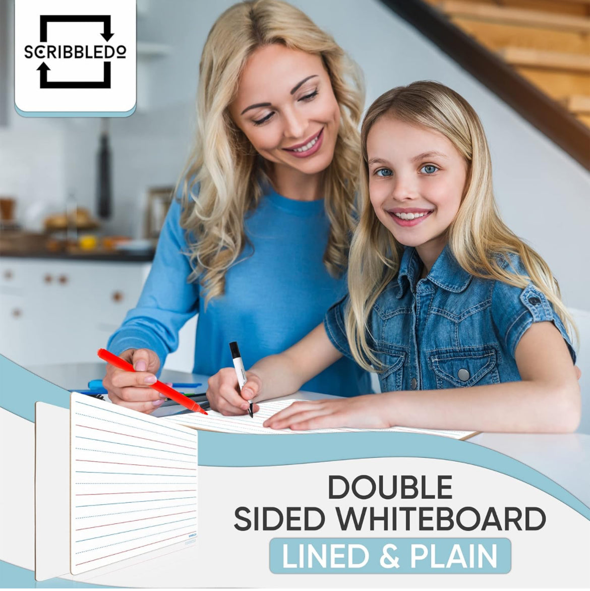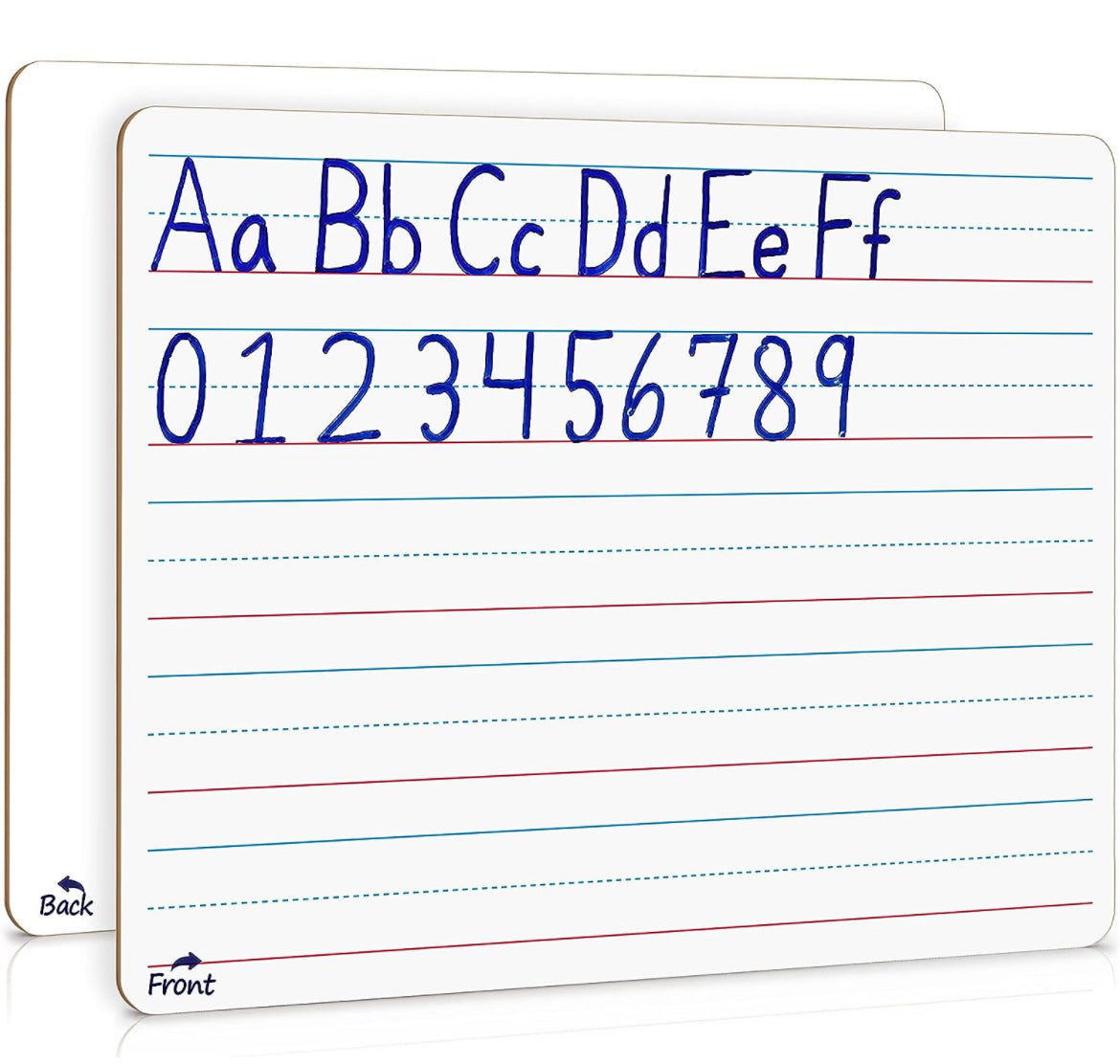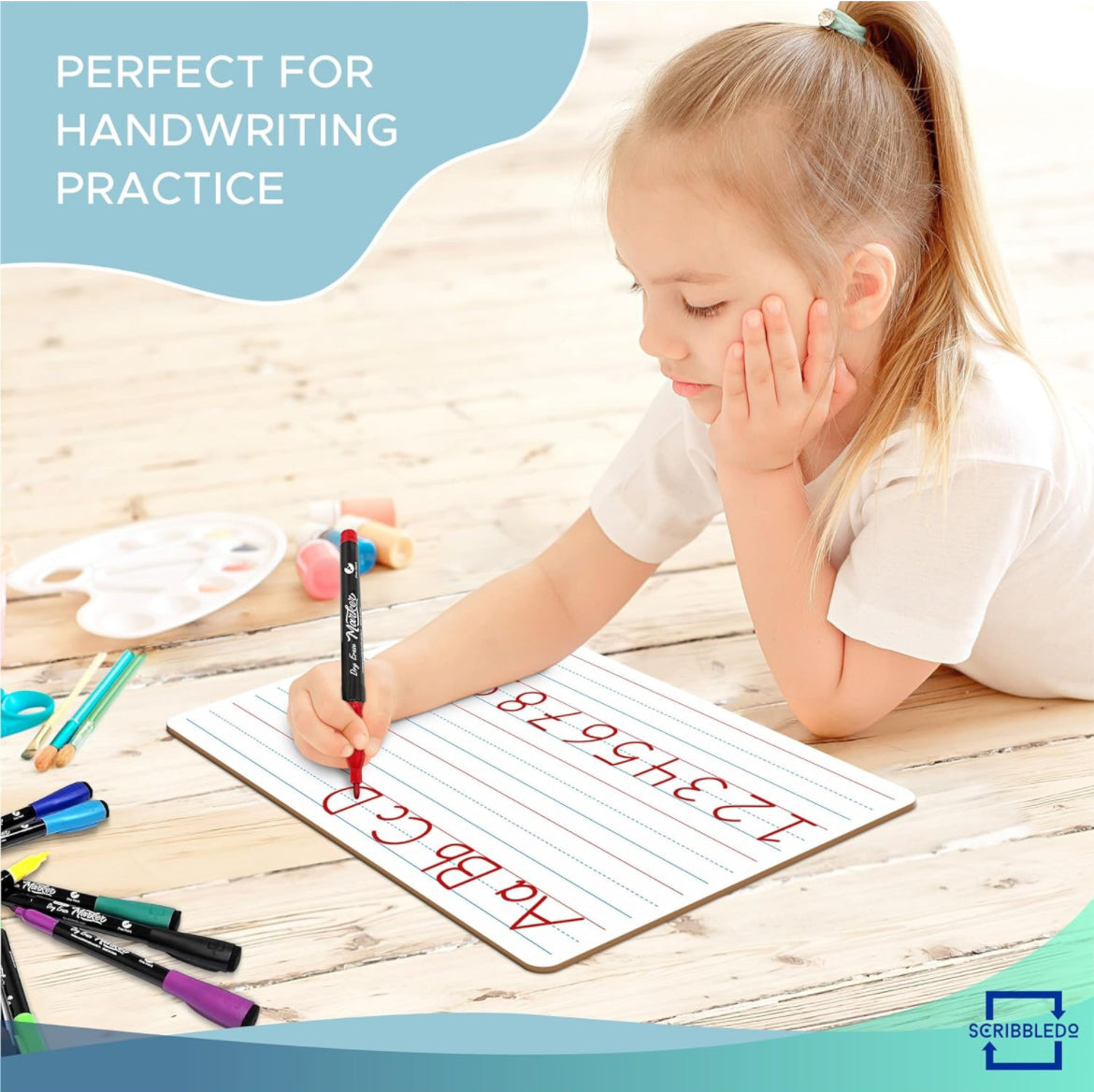 Paquete de 2 pizarras blancas de doble cara con forro de borrado en seco para niños, tablero de escritura a rayas para niños, pizarra blanca pequeña, pizarra de borrado en seco, líneas de pizarra - incluye 2 marcadores