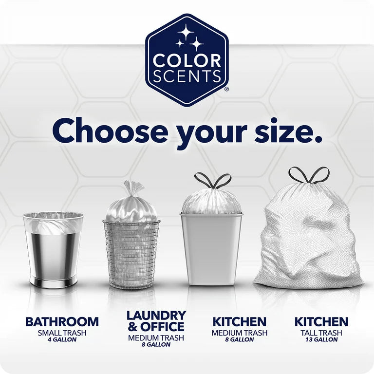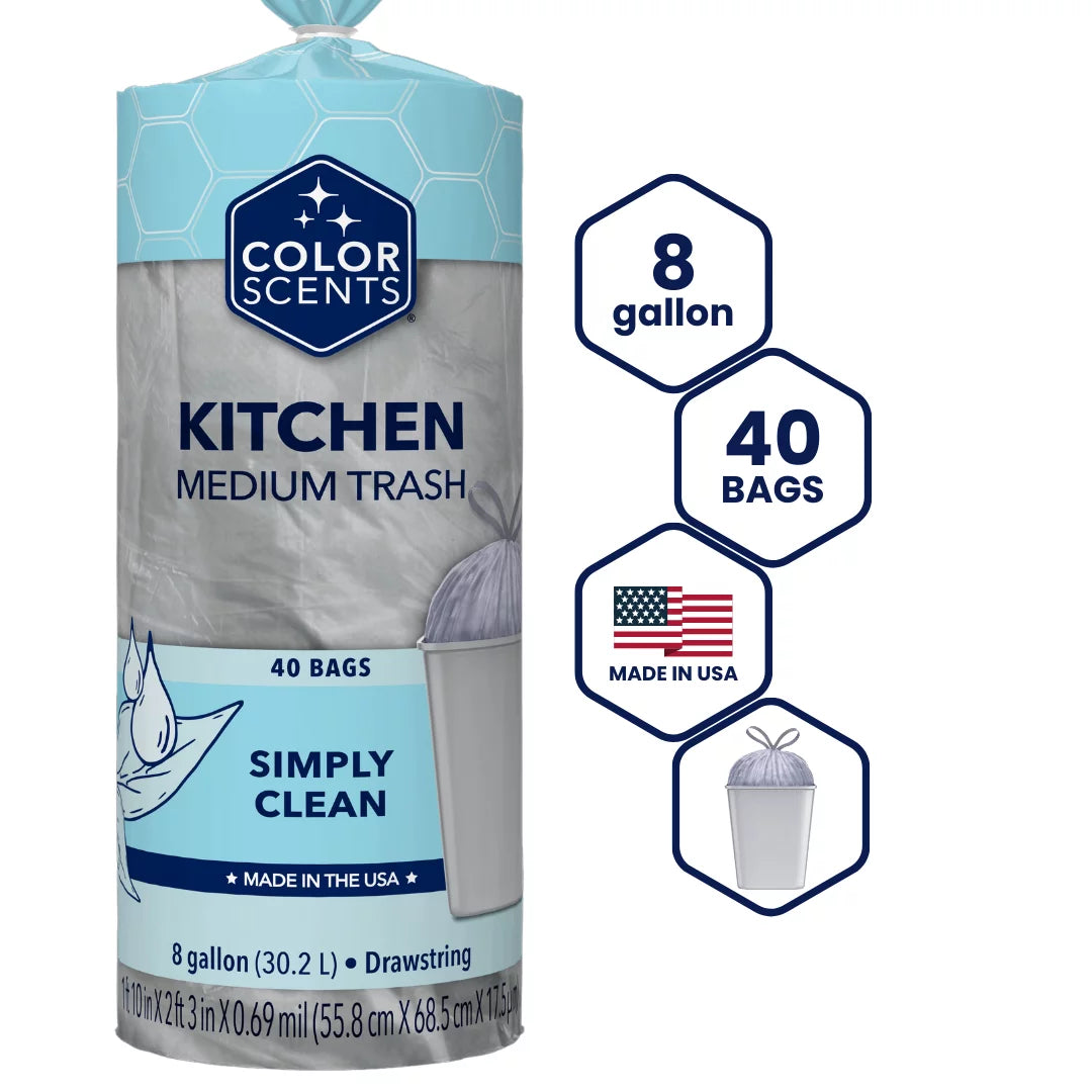 8 BOLSAS DE RESIDUOS DE GALÓN: 40 unidades, plástico plateado, bolsas de basura con cordón con un aroma simplemente limpio