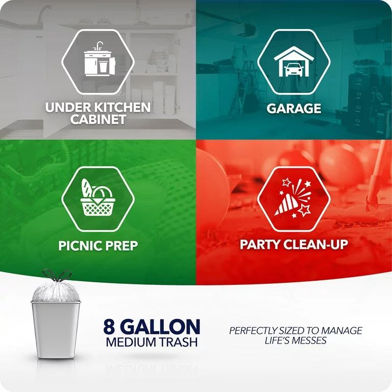 BOLSA DE BASURA DE DRAWSTRING: Nuestro cierre de cordón hace que sea fácil de quitar con un rápido apretar el cordón duradero, ¡Uno y listo!