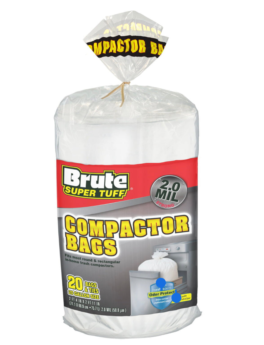 Bolsas de basura compactadoras Brute Super Tuff, 20 galones, 20 unidades