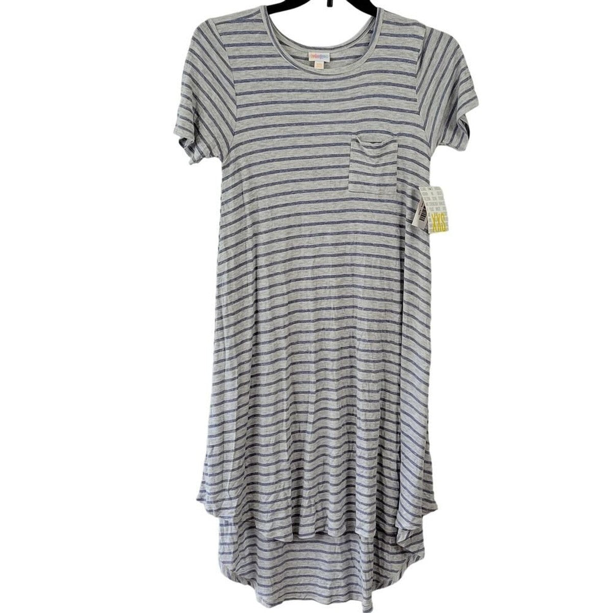 Vestido LuLaRoe Carly Gris Midi Preppy Rayas Clásico Mangas Cortas Para Mujer Talla 2XL